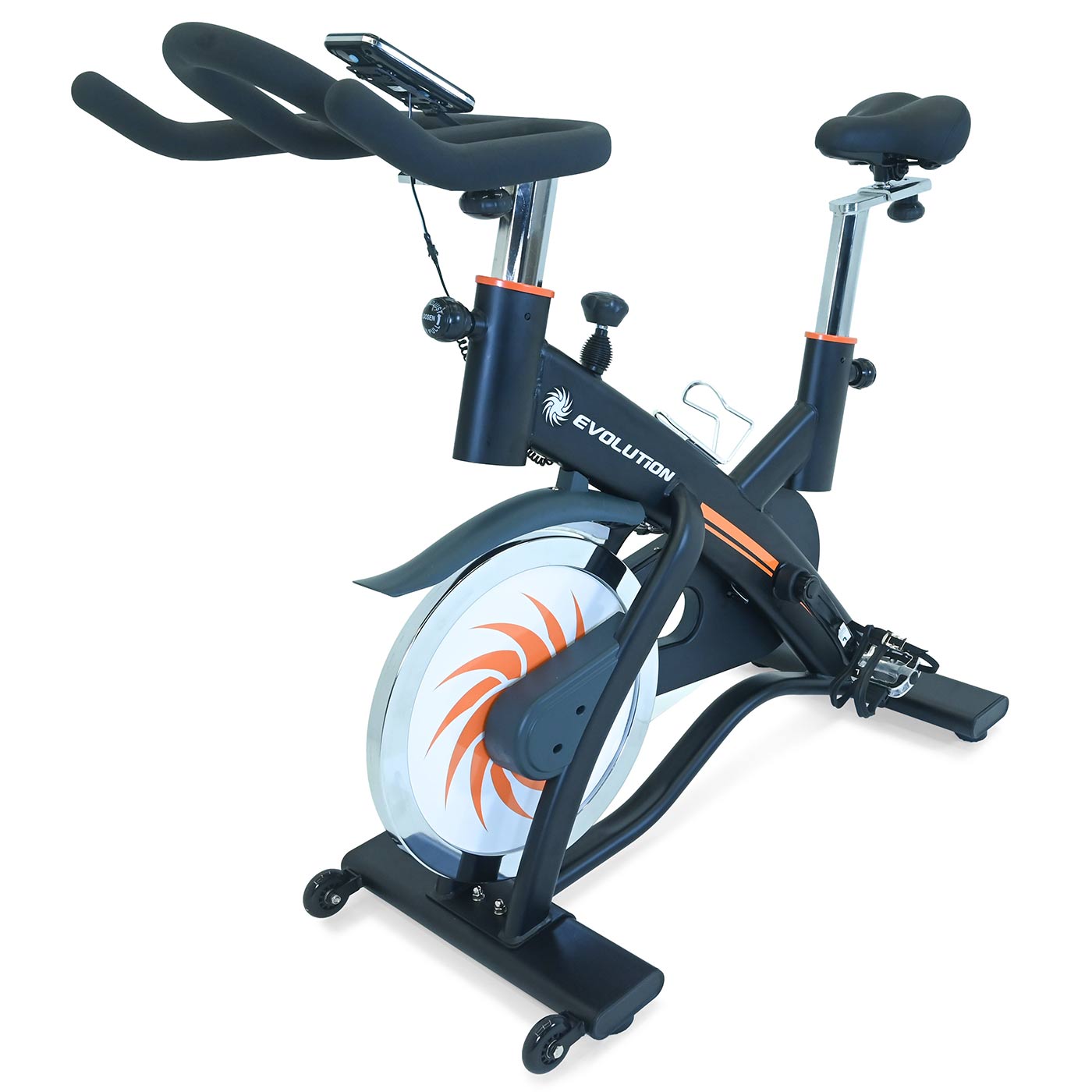 La bicicleta spinning Evo Río se destaca como una herramienta excepcional para incrementar el nivel de tus entrenamientos. Con su firme estructura y un volante de 20 kg, experimentarás estabilidad y equilibrio al pedalear.